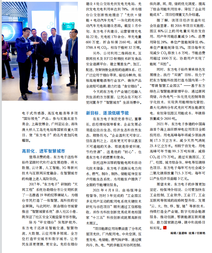 同时,南京合之赢科技有限公司始终秉承绿色发展理念,践行“双碳”目标,致力于把东方智能科技园打造为国内第一个“零碳智慧工业园区”——基于东方绿色云智慧能源管理平台,通过源网荷储、冷热电气一体化优化控制等数字化技术,实现供用能精细化管控,最大化消纳分布式光伏可再生能源发电,有效降低园区用能成本,年碳排放量减少 2650 吨。